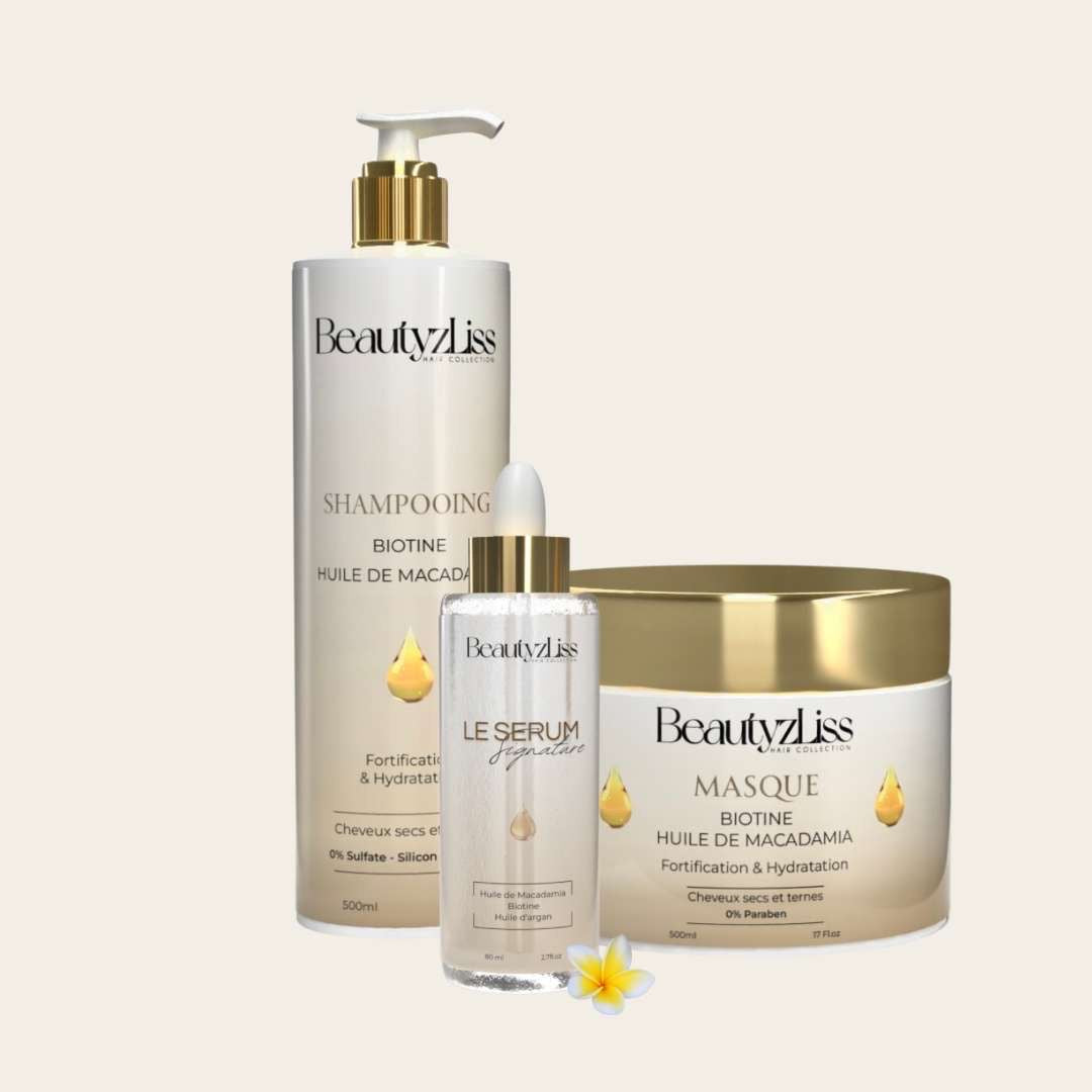 Découvrez notre lot exceptionnel enrichi à l'huile de macadamia, spécialement conçu pour nourrir et revitaliser vos cheveux en profondeur.