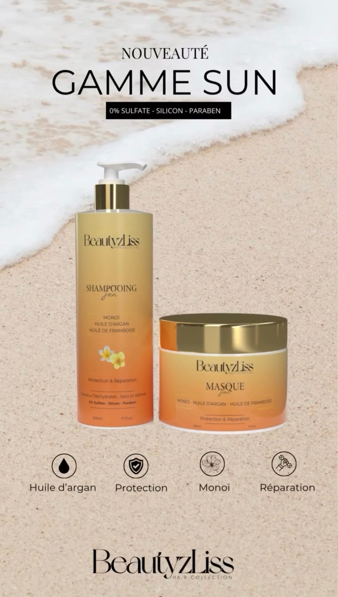 - Formule enrichie argan, monoï et huile de framboise